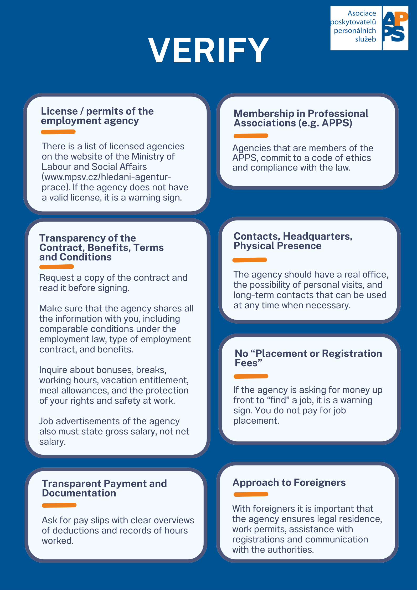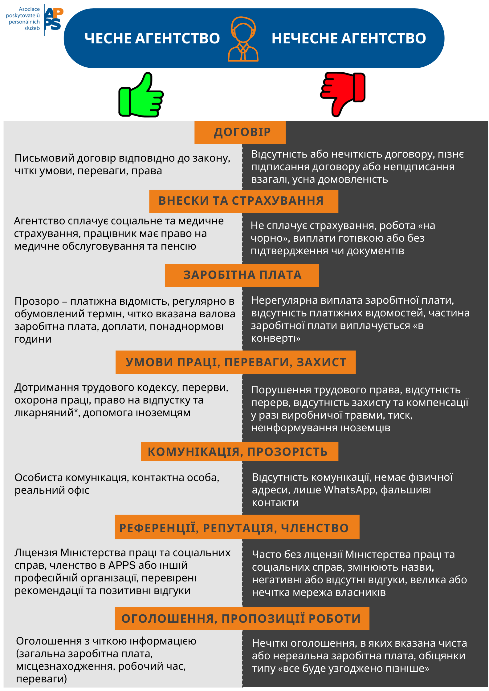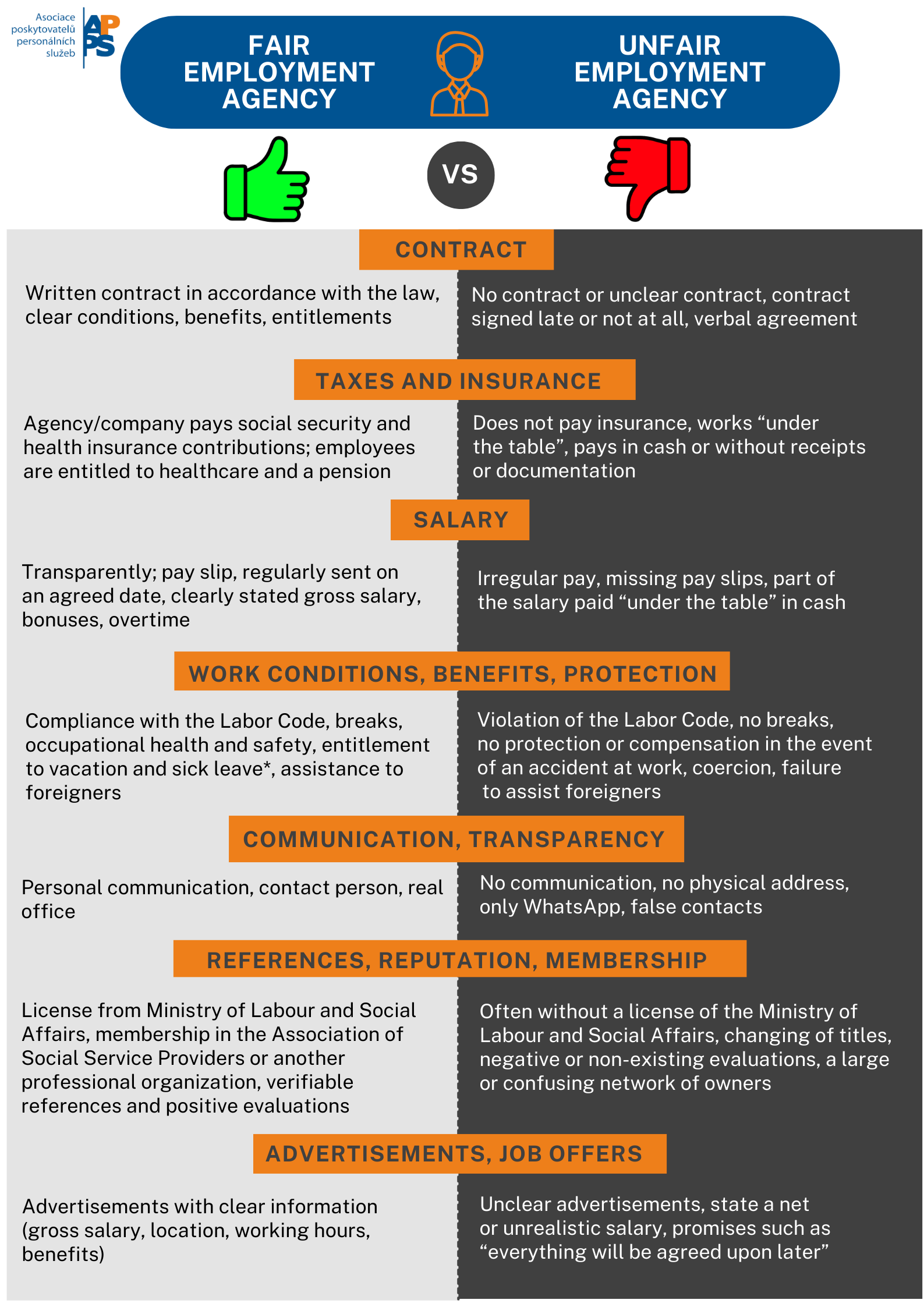 Leták vám pomůže rychle se zorientovat a vybrat si spolehlivého zaměstnavatele, který jedná otevřeně, férově a v souladu se zákonem.